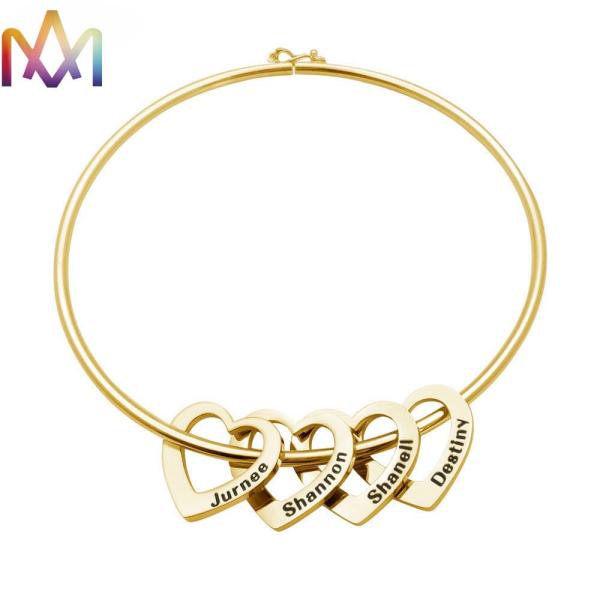 Heart Charm Bangles Womens Engraved Bracelets For Girls Grilfriends
